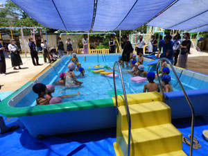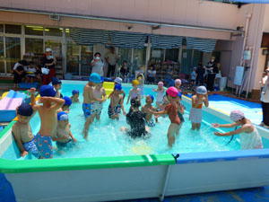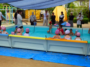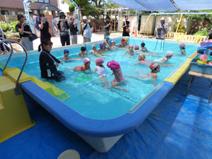 1学期にプール参観がありました。みんな少しずつプールにも慣れ、普段と変わらずプールを 楽しんでいる様子を、お家の方に見ていただく事ができました。お手伝いのお母さん、 暑い中ありがとうございました。
