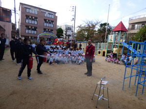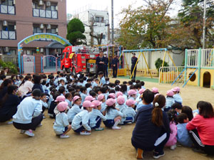 火災を想定した消防訓練をしました。各クラス静かに園庭に避難できました。