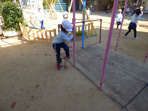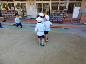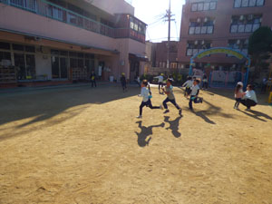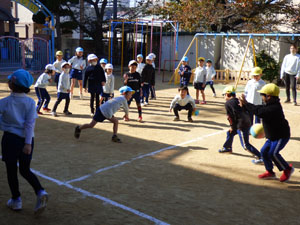 今日の年長さんの外遊びの様子です。後半はドッジボールをしました。汗をいっぱいかいている