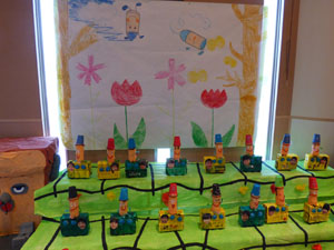 2/14(土)に作品展がありました。個人作品と共同作品が並べられました。今回のテーマは 「絵本の世界」です。年中さんの実際に冬の野菜のを見て描いた絵はとても特徴をとらえて いました。たくさんの保護者の皆様に見てもらい楽しんでもらいました。