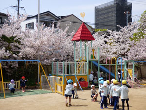 園庭の桜が満開になっています。とてもきれいに咲いています。 今年は例年より長く桜を楽しめるような気がします。 子どもたちは桜よりも遊具や遊びに夢中のようです(^-^) お砂場、ジャングルジム、滑り台と色々な遊びを楽しんでいます(^-^) 特に新入生は全てがはじめてで楽しいようです。