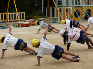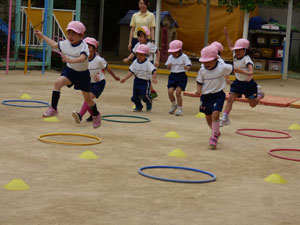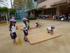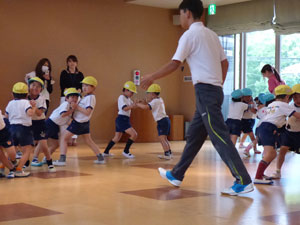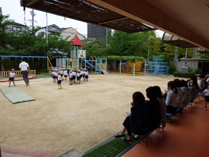 5月10日に年中さんと年長さんは体操参観を行いました。新しいクラスになって1か月たち 子供どもたちはじょじょにクラスに慣れてきました。たくさんのおうちの方々が見学に 来てくれました。 (保護者の方々からのアンケートは、保護者の皆様からの声のコーナーに掲載していますのでご覧ください。)