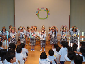 5月6月の誕生会が行われました。最後の先生からのプレゼントは「ダンス」でした。