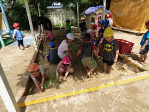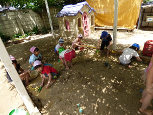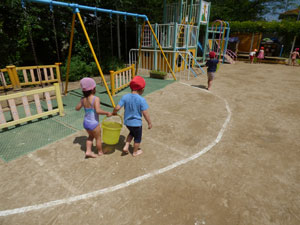 年中さんが晴れた日にどろんこ遊びを行いました。どろの感触を思う存分楽しみました☆