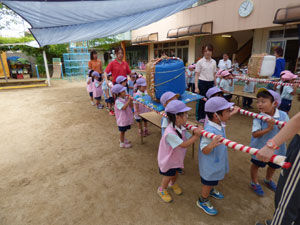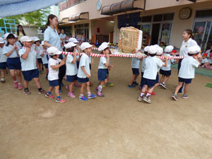 「わっしょい。わっしょい。」元気な声でおみこし巡行の練習です。