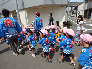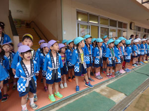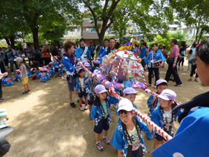7月8日(土)に第38回目のさつきまつりが行われました。園庭で山阪神社の宮司様によります 園児の健康祈願の神事して頂いた後に町内を各クラスがそれぞれのお神輿を担いで回りました。 暑い日でしたが、子どもたちは元気に歩きました。保護者のみなさまも楽しんでもらえたようです。 (保護者の方々からのアンケートは、保護者の皆様からの声のコーナーに掲載していますのでご覧ください。)
