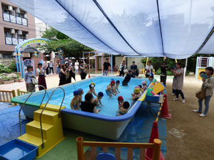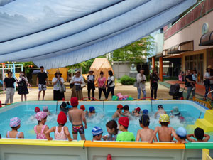 プールで楽しんでいる様子をおうちの方に観てもらいました。