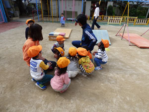 10月31日(火)にたんぽぽ組の体操がありました。雨が続いていたのでポカポカ陽気の中で