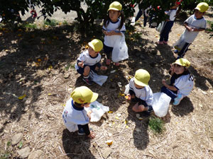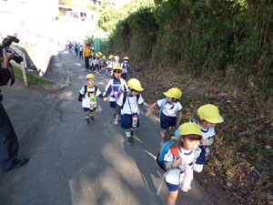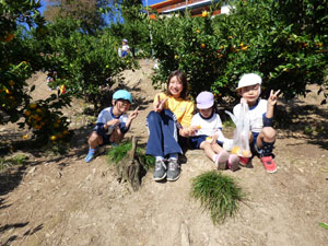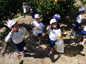 雨のため2回延期になっていたみかん狩りの遠足に11月1日にようやく行くことが出来ました(^-^) 暑くなく丁度良い天気の中で駅からみかん園まで歩きました。みかん園に到着し、 各自みかんを取って食べました。少し酸っぱくて甘いおいしいみかんでした。 お弁当を食べてから帰りました。楽しかったです!