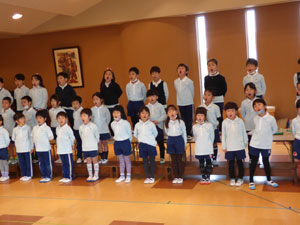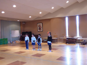 園では各クラス発表会に向けて練習をがんばっています。年中、年長の歌と劇の様子です。