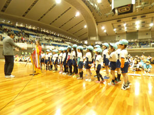 3月3日(土) 舞洲アリーナでドッジボール大会が開催されました。 1か月間毎日練習してきた成果を発揮する日です。昨年青組は優勝しましたので、 優勝旗返還と選手宣誓をしました。白熱した試合が展開されましたが、 結果として白組は5位青組は入賞でした。一生懸命がんばった子どもたちには良い思い出と なりました。 (保護者の方々からのアンケートは、保護者の皆様からの声のコーナーに掲載していますのでご覧ください。)