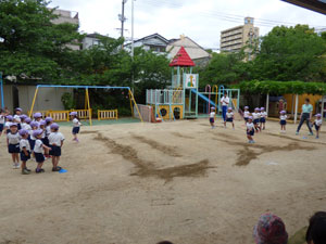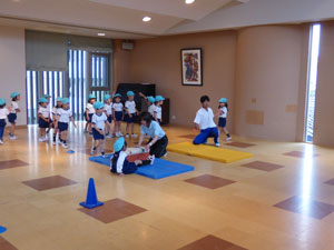 5/8(火)に今年度はじめての体操参観が年中組と年長組で行われました。 雨も上がり園庭で行うことが出来たのですが、青組の途中で雨が・・・・、 ホールに移動してホールで行いました。元気いっぱい体を動かすところを 保護者の皆様に観てもらいました。今年度も体操がんばろうねー!! (保護者の方々からのアンケートは、保護者の皆様からの声のコーナーに掲載していますのでご覧ください。)