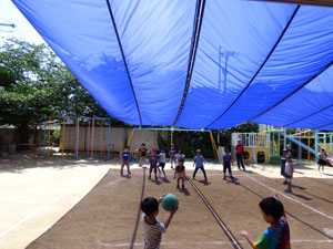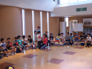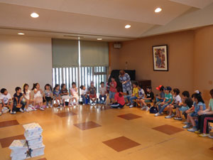 6/2(土)に昨年度卒園児(現在小学校1年生)が幼稚園にお里がえりで遊びに来ました。 総勢57名です。ホールでインタビュー(好きな教科、好きな遊び)をしました。 そのあと外でドッジボールをして楽しく交流しました。 学校の違うお友だちとも会えて、みな嬉しそうでした。