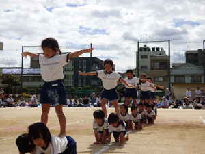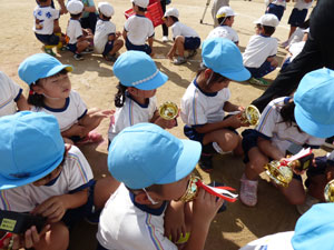運動会の後半です。年長さんの組立体操、年中さんのお遊戯、年長さん親子帽子取り、 ダンシング玉入れ、パパママリレーです。たくさんの種目がありました。 最後のパパママリレーも白熱しました。親子で一緒に頑張る競技もあり親子の絆が 深まったのではないでしょうか。運動会お疲れ様でした。 (保護者の方々からのアンケートは、保護者の皆様からの声のコーナーに掲載していますのでご覧ください。)