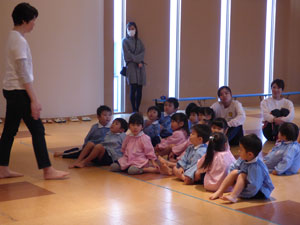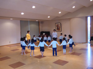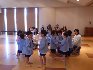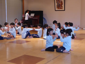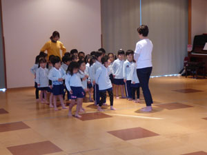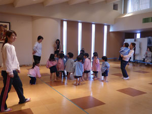 11月29日(木)に年少〜年長まで6クラスでリトミック参観を行いました。 普段のリトミックの様子を保護者の皆様に見てもらいました。 リトミックはほんわかとした暖かな雰囲気の中ピアノの音を奏でながら行う音楽リズム遊びです♪ 保護者の皆様にも好評です。 (保護者の方々からのアンケートは、保護者の皆様からの声のコーナーに掲載していますのでご覧ください。)