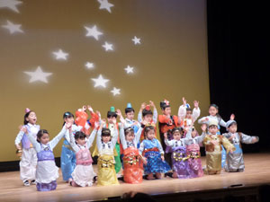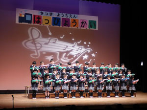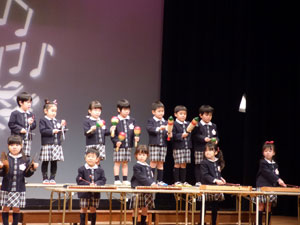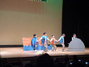 2月9日に行われました発表会の様子です。クレオ大阪南ホールで行いました。 大きな舞台でも子ども達普段通り堂々と立派に演じてくれました。 年長の鍵盤ハーモニカと歌、年少、年中の楽器あそび、年長の劇の様子です。 (保護者の方々からのアンケートは、保護者の皆様からの声のコーナーに掲載していますのでご覧ください。)