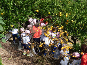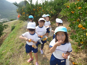 10月31日(木)にみかんがり遠足に行きました。 とても良いお天気の中でみかんがりができました。電車で行き、道中もお話しながら 歩いていました。もぎたてのみかんはとってもジューシーで美味しかったです♪