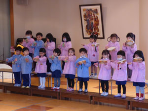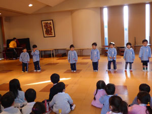 2/7に行われる発表会の年少の練習の様子です。歌とダンスです。毎日楽しく練習をしています。