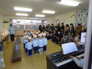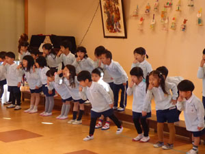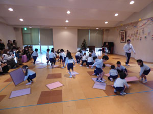12月4日に保育参観を行いました。今年最初の参観です。保護者の方に見てもらい 子どもたちもやる気まんまんでした。 幼稚園での様子を見て頂くことができて保護者のみなさまにも喜んでもらえました。 (保護者の方々からのアンケートは、保護者の皆様からの声のコーナーに掲載していますのでご覧ください。)