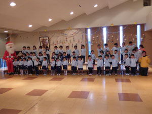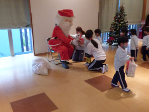 12月14日にクリスマス会を行いました。密を避けるため、3学年にわけて行いました。 さつき幼稚園にサンタさんも来てくれましたよ。学年毎クリスマスの絵本を読んでもらってから お歌を2曲歌い、サンタさんから一人ずつプレゼントをもらいました。 短時間でしたが、楽しいクリスマス会になりました。