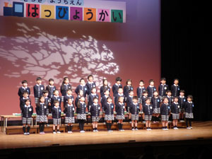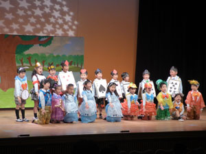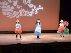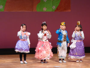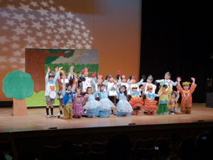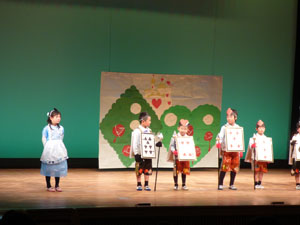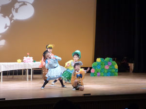 年長さんの「劇」と「歌と鍵盤ハーモニカ」と「英語あそび」です。劇のみクラス単位となります。さすが年長さん、大きな舞台でも堂々と演じてくれました☆ 子どもたちにとっても貴重な経験となったと思います。 (保護者の方々からのアンケートは、保護者の皆様からの声のコーナーに掲載していますのでご覧ください。)