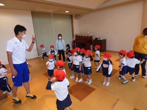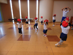 楽しく体操していました。これから週に1回体操を楽しくがんばってやろうね。