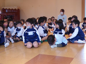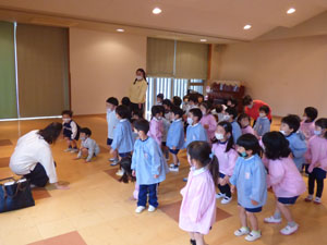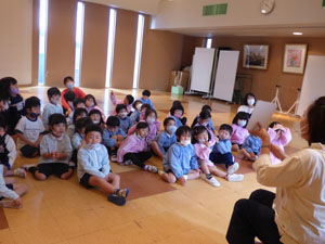 4月28日に英語遊びがありました。年少さんと年中さんの様子です。学年ごとに行っています。