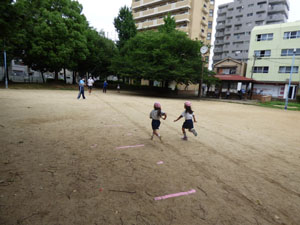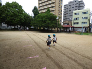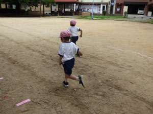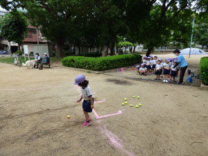 20m走とテニスボール投げと幅跳びです。がんばって全力を出していました♪
