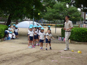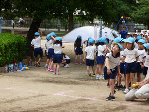6/29の体操の時間に年中組と年長組は体力測定をしました。