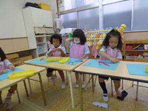 子ども達はねんどが好きで集中して色々な形のものを作っていました。