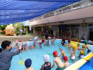 7月頭からプール保育がはじまりました。子ども達も待ちに待ったプールでした。