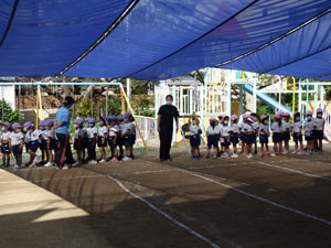 子ども達は今は運動会の練習を園庭や教室やホールで連日がんばっています。