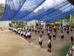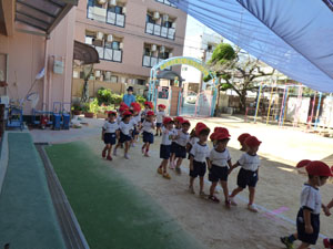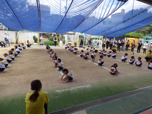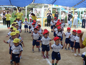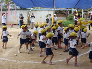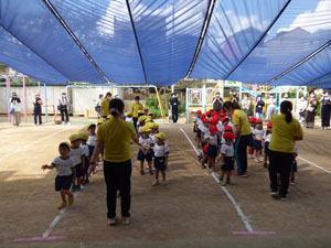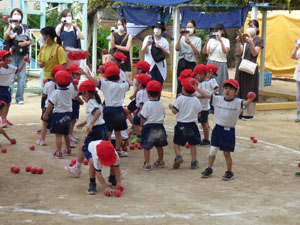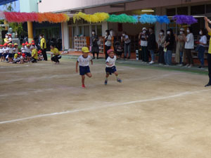 今年度の年少さんの運動会は感染防止のため園庭で行いました。おゆうぎ、かけっこ、玉入れを しました。 小さな運動会となりましたがたくさん練習して本番も一生懸命がんばりました。 (保護者の方々からのアンケートは、保護者の皆様からの声のコーナーに掲載していますのでご覧ください。)