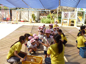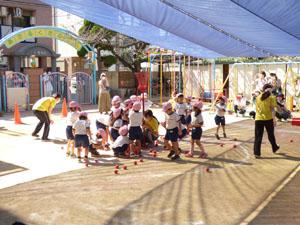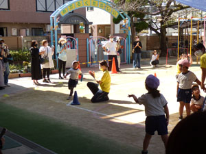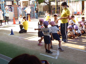 年中さんも今年は園庭での運動会でしたが、おゆうぎ、リレー、玉入れと3種目を 練習から本番まで一生懸命にがんばりました。最後はメダルももらいました。 (保護者の方々からのアンケートは、保護者の皆様からの声のコーナーに掲載していますのでご覧ください。)