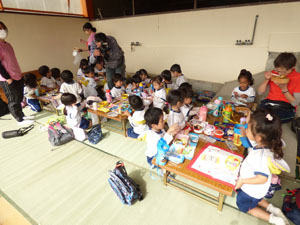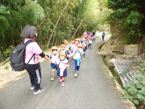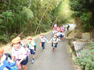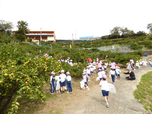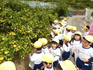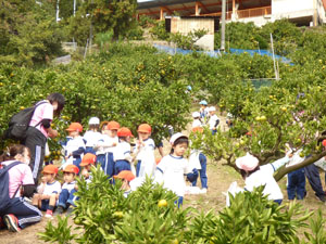10月21日にみかんがり遠足に全園児で行きました♪電車に乗って行きました。 電車に乗る前には電車の中でのマナーのお話を先生から聞いてから乗りましたよ。 良い社会勉強ですね。みかん園までは徒歩で上り坂も一生懸命歩きました。 みかんも木からそのまま取ってその場で食べました♪みんな、とても美味しいと言っていました。