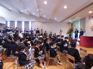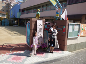 4月6日に入園式を行いました。 新年少組に入園のお友だちが元気に幼稚園に来てくれました。 まだ園庭の桜が残っていて入園生を祝福してくれているようでした。 これから幼稚園でたくさん遊びましょうね。 (保護者の方々からのアンケートは、保護者の皆様からの声のコーナーに掲載していますのでご覧ください。)