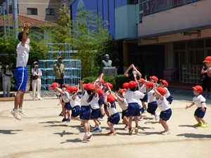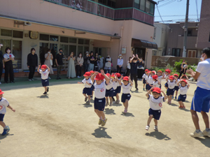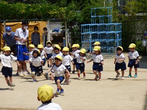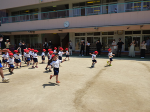 5月24日に年少組の2クラスは体操参観をしました。 4月から幼稚園に入園してから体操は4回目です。 たくさんの保護者のみなさんに見てもらいながら元気にかけっこをしました。 お母さんやお父さんの姿を見ても体操に集中できていました。 これからも火曜日は体操の先生と元気に体操していきます。 (保護者の方々からのアンケートは、保護者の皆様からの声のコーナーに掲載していますのでご覧ください。)