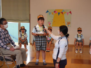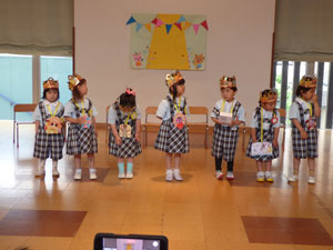 5月20日に4月と5月生まれの園児の誕生会を行いました。 学年毎に行っています。誕生会の園児はプレゼントをもらってお歌を歌います。 学年のおともだちからお祝いしてもらいます。 誕生会は2か月に1回幼稚園のホールで行います。