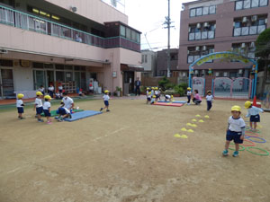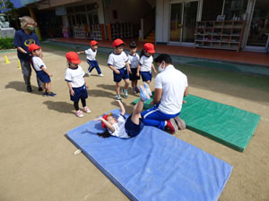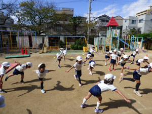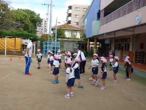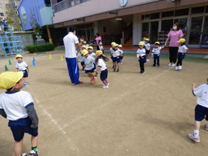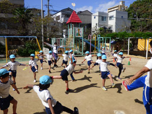 10/18(火)に運動会の後はじめて体操をしました。 とてもすがすがしい気候の中で園庭で体を動かすことができました。 年少から年中、年長とみていくと年長さんの動きの活発さや成長がよくわかります。 年少さん、年中さんも一生懸命に体を動かしています。やはり動きはかわいらしいです。