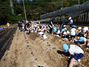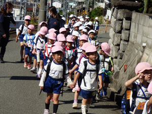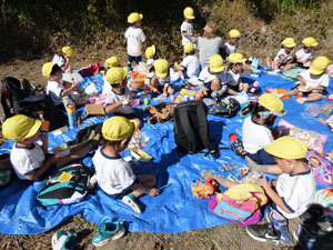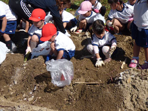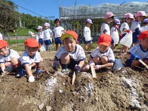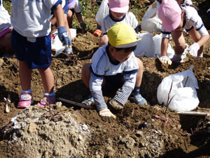 10月20日に全園児でいもほり遠足に行きました。 電車に乗っていき駅から年中さんと年長さんは30分程歩きます。 年少さんはそこからバスに乗っていきます。良い天気の中一生懸命土を掘っておいもを探しました。お弁当を食べて帰ってきます。子どもたちとっても楽しかったようです♪