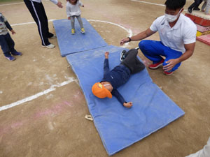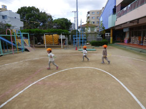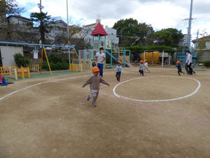 10月25日はたんぽぽ組の体操の日でした。園庭でかけっこをして、様々な器具を使って