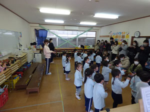 1月20日(金)に全学年 保育参観がありました。年少さんはクラスごとに教室で劇をしました♪ 年中さんはホールで学年ごとにゲーム大会をしました♪ 年長さんはクラスごとに教室で「ひらがなゲーム」をしました。 ひらがなゲームは小学校に向けてひらがなを覚える良い勉強になりました。 どの学年もとても楽しい参観となることができました♪ (保護者の方々からのアンケートは、保護者の皆様からの声のコーナーに掲載していますのでご覧ください。)