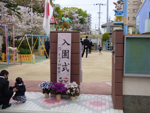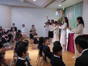 春のおだやかな天候のもとで新入園児たちの入園式が行われました。