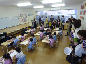 6月3日(土)に土曜参観を行いました。年少組、年中組は教室での活動を年長組はホールで 音楽会をしている様子を保護者の方に見てもらいました。 普段幼稚園に来れないお父さんにも見てもらい子どもたちは嬉しそうでした。 (保護者の方々からのアンケートは、保護者の皆様からの声のコーナーに掲載していますのでご覧ください。)
