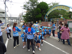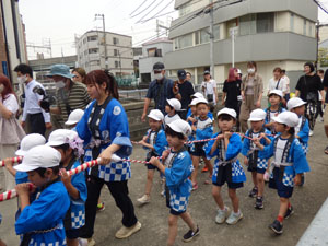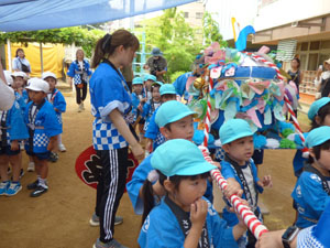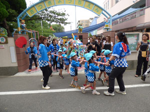 当園の伝統行事であります、「おみこし わっしょい」を行いました。 年長さんは少しだけ園の外を歩いてまわりました。はっぴを着ておみこしをかつぐというめったに できない経験ができたと思います。終わった後に子どもたちも達成感を感じた顔をしていました。 (保護者の方々からのアンケートは、保護者の皆様からの声のコーナーに掲載していますのでご覧ください。)