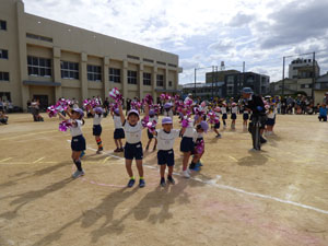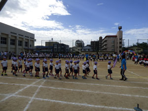 10/7(土)お天気に恵まれ秋晴れの中、近隣の小学校で運動会を行いました。年少組はお遊戯、