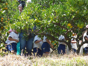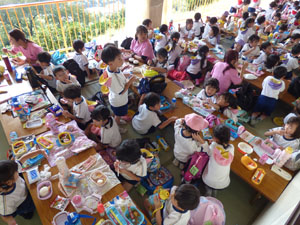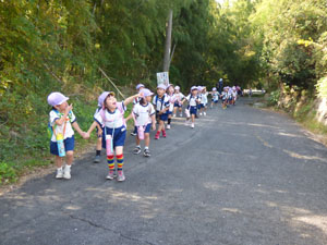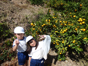 10月23日、とても良い天気の中、全学年でみかんがり遠足に行きました。 電車の移動はマナーを守って静かに行動できました。みかん園までは少し急な山道ですが、 年少さんでも「抱っこ〜」と言う子はおらず頑張って歩けました。 自分で採ったみかんはとても美味しかったようです。