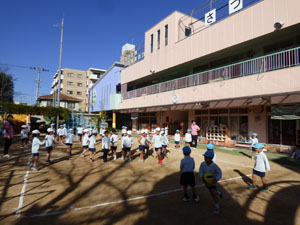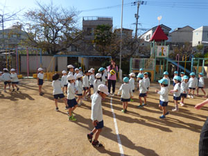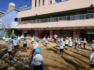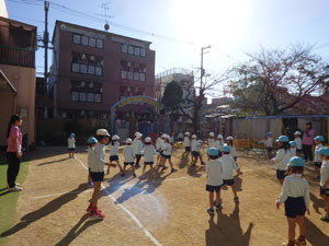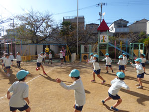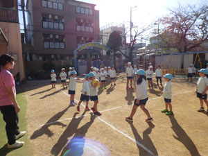 11月になりお昼ご飯を食べて園庭遊びをした後には、年長さんはドッジボールをしています。 さつきの子どもたちは、みんなドッジボールが大好き。関西幼児ドッジボール大会では、 3回の優勝を経験しておりボールを怖がらずに、積極的にボールを取りに行きます。 運動を通して、日々チームワークや集中力・判断力を培っているようです。