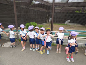 4/26(金)年中さんが楽しみにしていた天王寺動物園に遠足に行きました。 晴れて良いお天気でしたが、気持ちの良い風も感じ、最高の遠足日和となりました。 トータルで1時間以上歩きましたが、一人ひとりしっかりと自分の足で歩いてとても立派でした。 真剣に動物さんたちを見て、「バイバイ!また来るね」と言葉をかけていましたね。 動物さんたちも、さつきのみんなに会えて嬉しかったと思います。