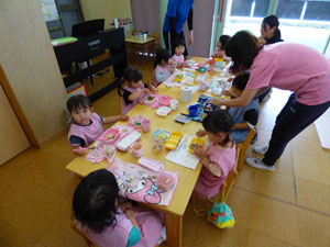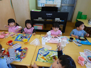 未就園児クラスたんぽぽ組の様子です。今年度もお弁当が始まりました。皆でお椅子に座って、